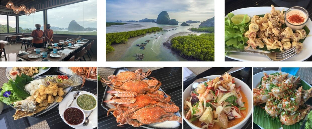 เมนูเช่น กุ้งผัดพริกเกลือ,ยำเสม็ดนางชี ,เมี่ยงปลากะพง , ปลาหมึกชุบแป้งผัดไข่เค็ม ,