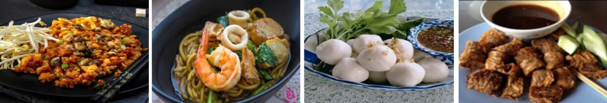 อาทิ น้ำพริกกุ้งเสียบ หมูฮ้อง หมี่หุ้นแกงปู ปลาเจี๋ยน ผัดผักบุ้งผัดกะปิภูเก็ต