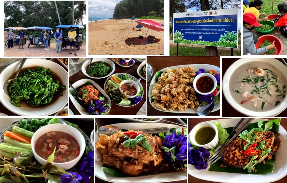 วันที่สอง อาหารเช้าที่โรงแรม– เที่ยวชุมชนไม้ขาว นั่งสามล้อชมวิวทะเล สปาทราย ชมการจับจั่กจั่นทะเล เก็บ และปลูกผักลิ้นห่าน ชิมอาหารพื้นบ้าน