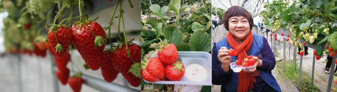 จากนั้นนำท่าน สนุกในการเก็บสตรอเบอรี่ เลือกและลิ้มรส ลูกสตรอเบอรี่สดๆ อันแสนหอมหวานจากต้น!! สตรอเบอร์รี่ที่นี่มีขนาดใหญ่ สีแดงสด รสชาติหวานกว่าบ้านเราหลายเท่า และสามารถเลือกสตรอเบอร์รี่สดใหม่ได้ด้วยตัวเอง และทานได้แบบไม่อั้น ทำให้ทั้งอิ่มท้องและอิ่มใจ ประทับใจกับรสชาติอันแสนอร่อยและหอมหวาน