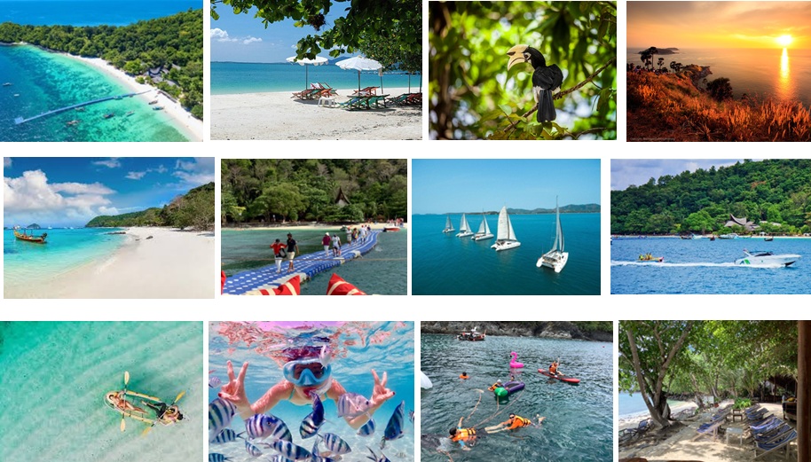 14.00 น. เดินทางถึงเกาะเฮ เชิญท่านพักผ่อนตามอัธยาศัย บนชายหาด เช่น นอนเล่นบนเก้าอี้ผ้าใบ, ว่ายน้ำ, ดำผิวน้ำดูแนวปะการัง ชมนกเงือกสัญลักษณ์แห่งคู่รักที่จะมาทักทายท่าน (ถ้าโชคดี)