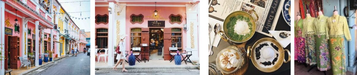 เดินทางสู่ย่านเมืองเก่า แล้วนำคณะถ่ายรูปที่แลนด์มาร์คสำคัญของเมืองภูเก็ต หน้าพิพิธภัณฑ์เพอรานากันนิทัศน์ (ตึก Standard Charter และศูนย์รวม ข่าวพรหมเทพ) แล้วให้คณะเดินชมและถ่ายรูปย่านเมืองเก่าภูเก็ต ที่ถนนถลาง แหล่งการค้าที่สำคัญจากอดีตถึงปัจจุบัน ชมสภาพบ้านเรือนซึ่งสร้างในสมัยยุคเหมืองแร่เฟื่องฟูในอดีต สถาปัตยกรรมแบบชิโนยูโรเปี้ยน (จีนและยุโรป) ชมตึกโบราณ ถ่ายรูป PHUKET STREET ART ที่สะท้อนวิถีชีวิตชาวภูเก็ต , ช็อปปิ้งสินค้าพื้นเมือง เช่น ผ้าถุงปาเต๊ะ จากอินโดนีเซีย ผ้ามัดย้อม เสื้อยืดภูเก็ต ชิมขนม และ อาหารท้องถิ่นต่างๆ เช่น โอ๊ะเอ๋ว ไอศกรีม ขนมอาโป้ง ขนมพื้นเมืองหลากชนิด